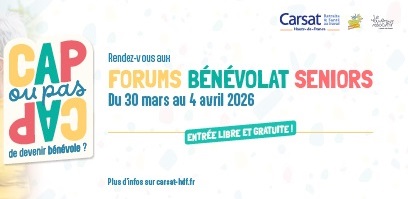 Cap ou pas cap de sauter le pas ?Publié le 03 mars 2026Du 30 mars au 4 avril 2026, les Forums Bénévolat Seniors font leur grand retour partout dans les Hauts-de-France. -
