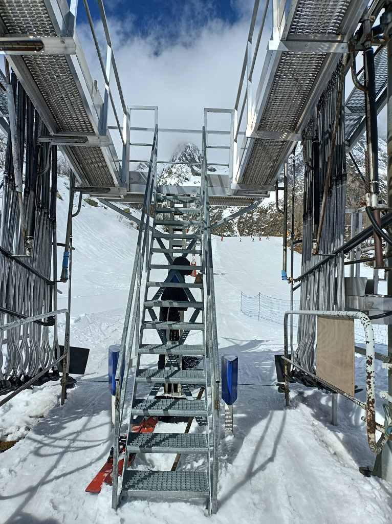 - mise aux normes & sécurisation des gares de Télésièges débrayables : portique antichute ;