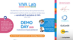 Webinaire DemoDay 2025 de VIVA Lab le 03 octobrePublié le 01 octobre 2025Le DemoDay 2025 de VIVA Lab, l’accélérateur dédié aux solutions du bien vieillir et de l’autonomie, se tiendra en ligne vendredi 03/10/2025, de 14h à 15h30. -